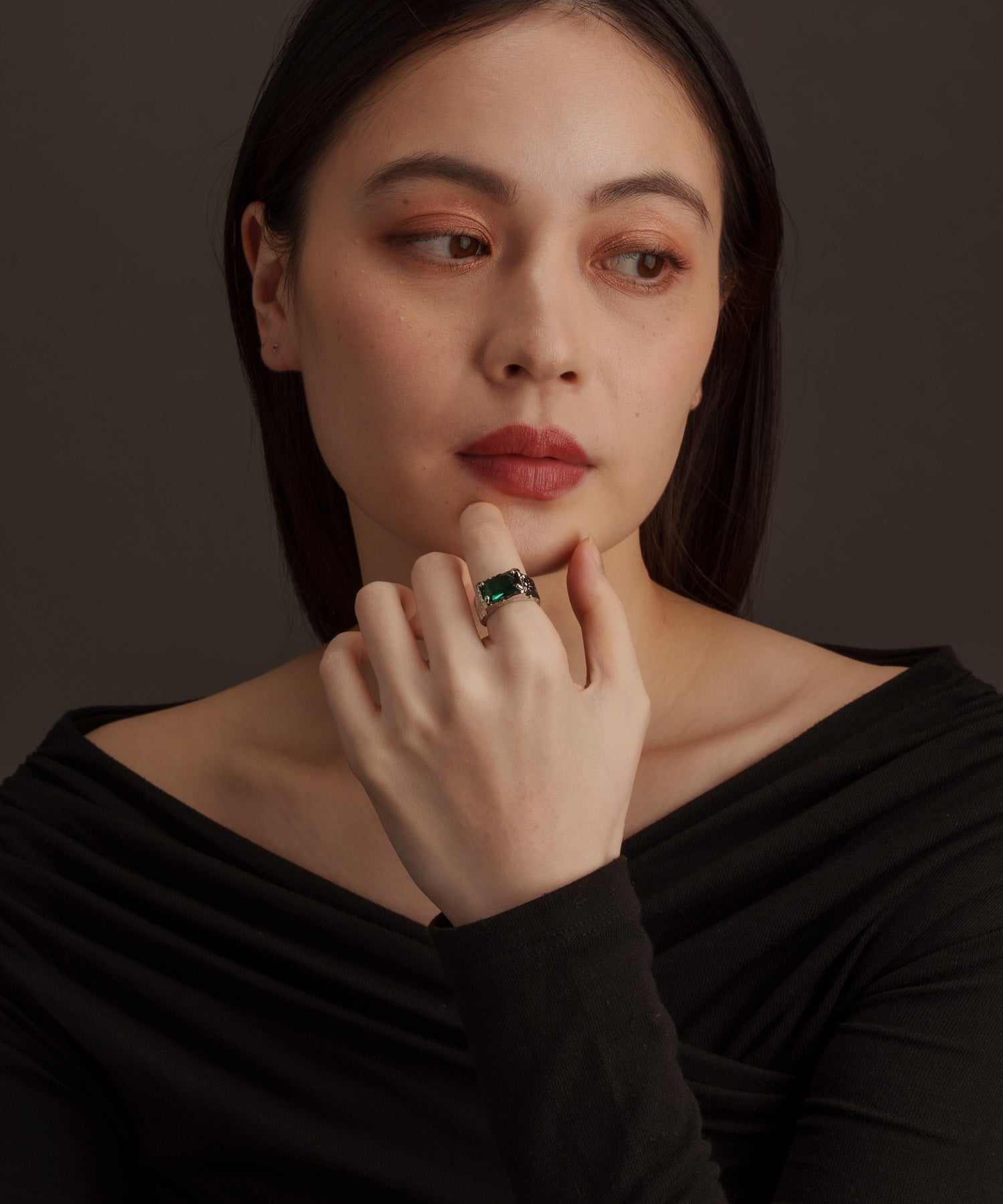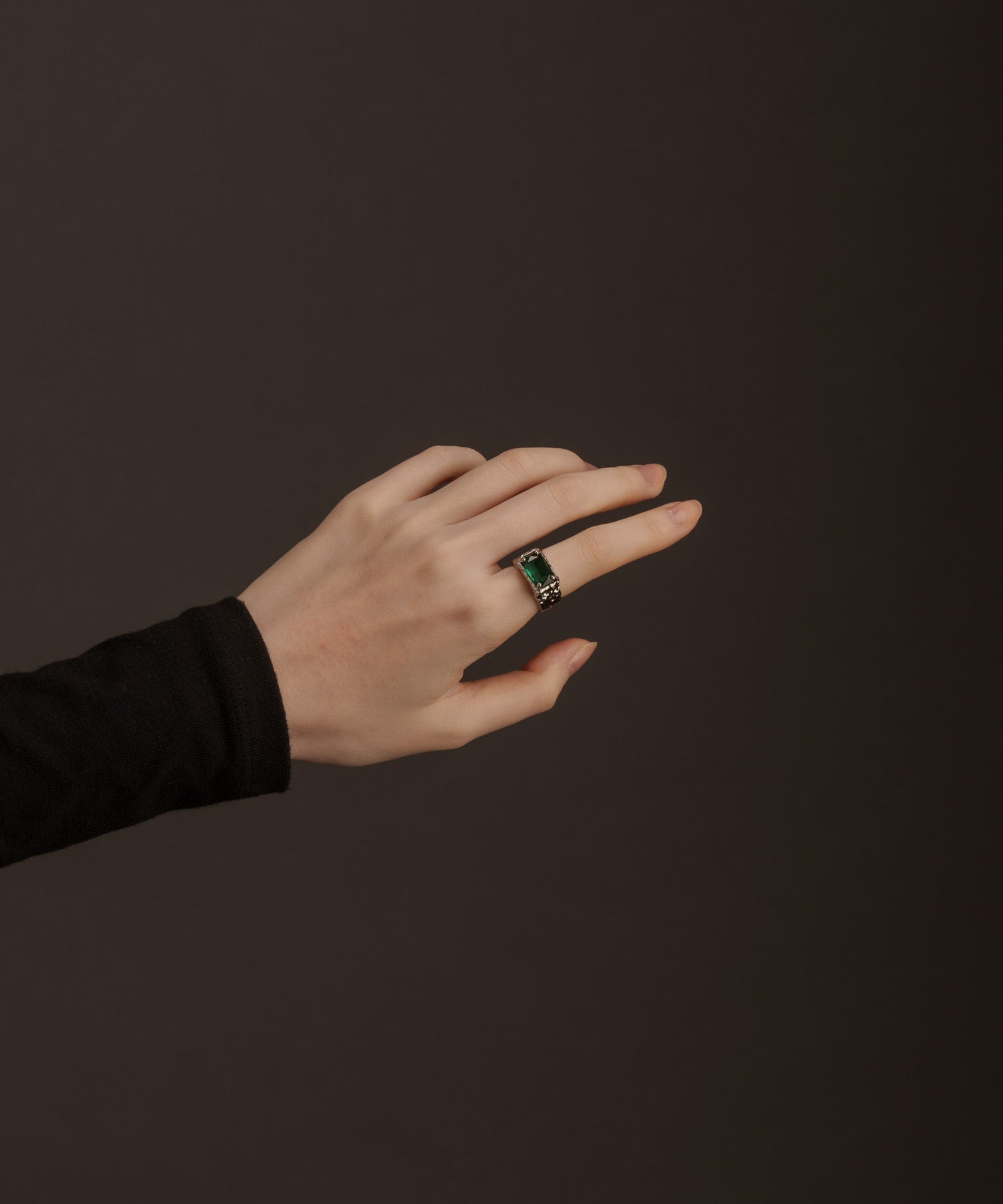 年代物風でどこか懐かしさがあるリング。(1AP1127)スクエアチェーンヴィンテージピアスとSETでお使いいただけます。