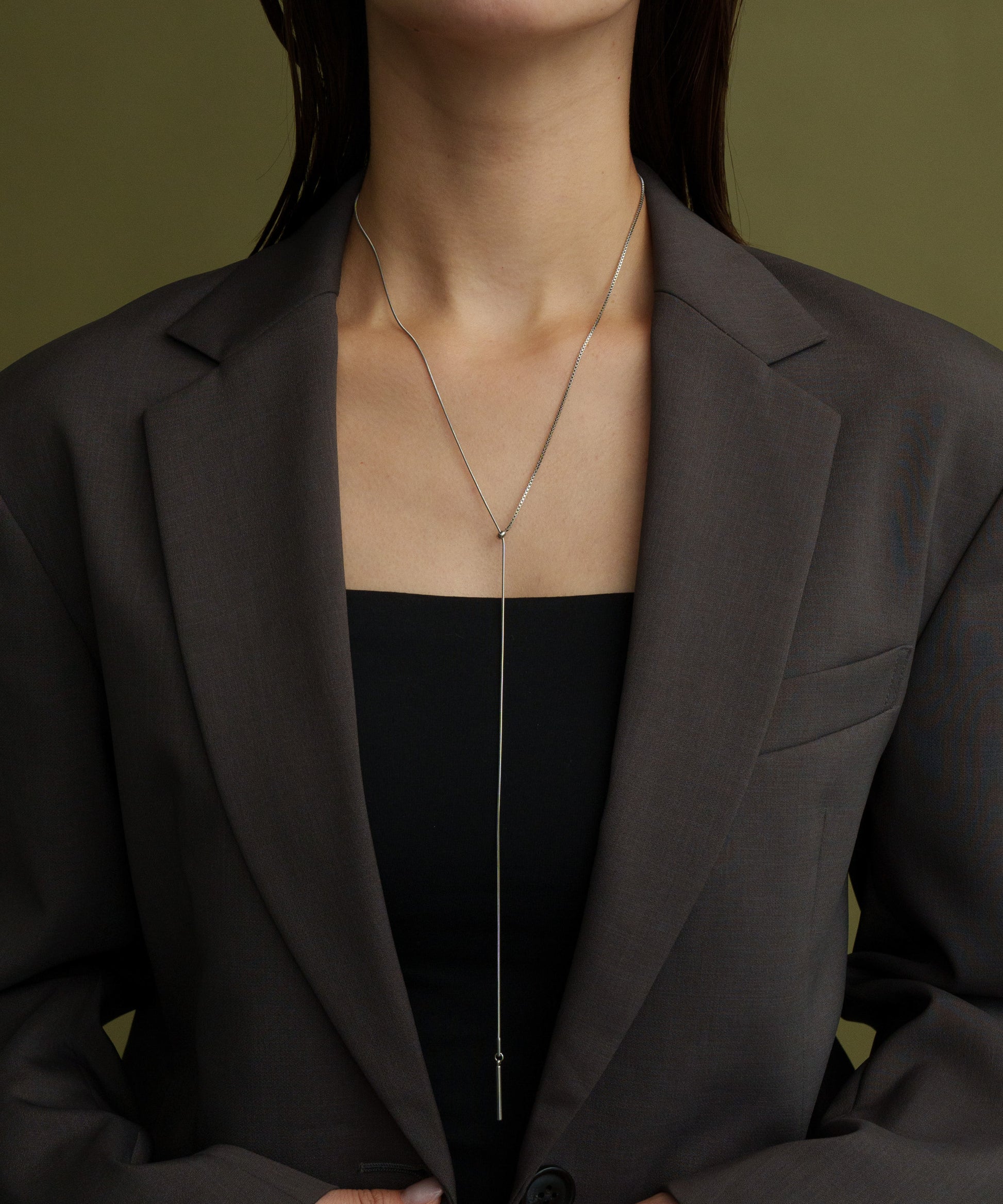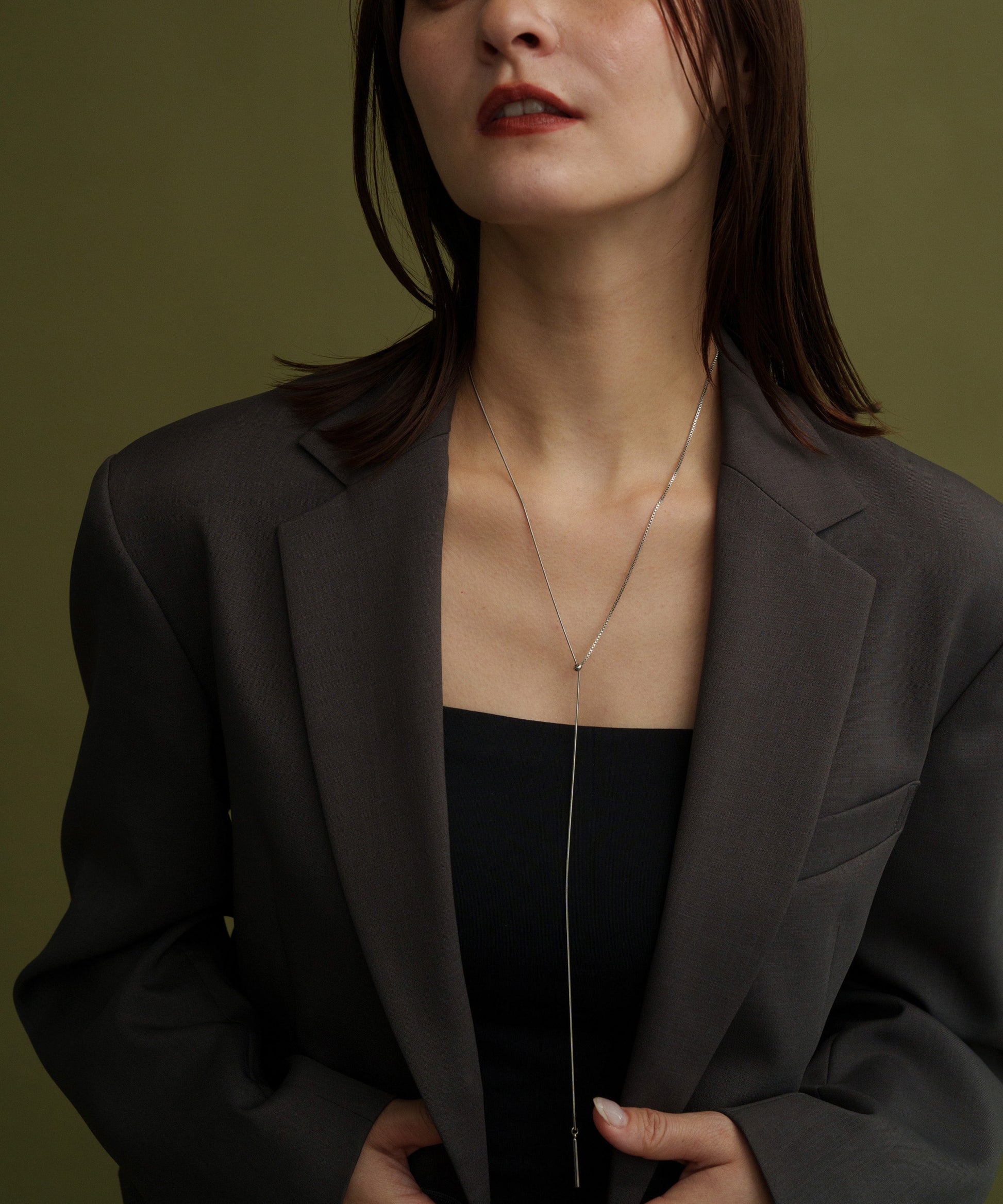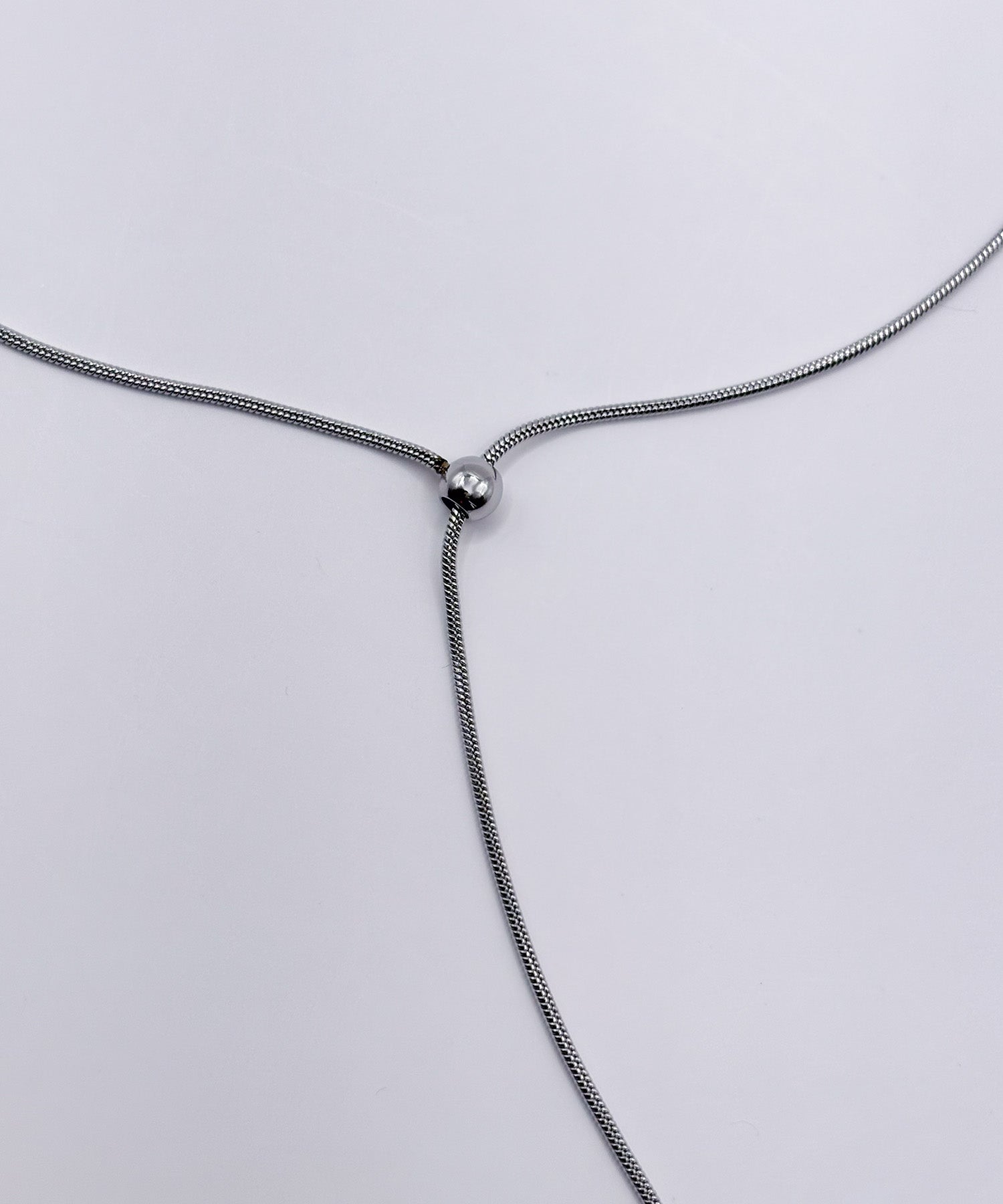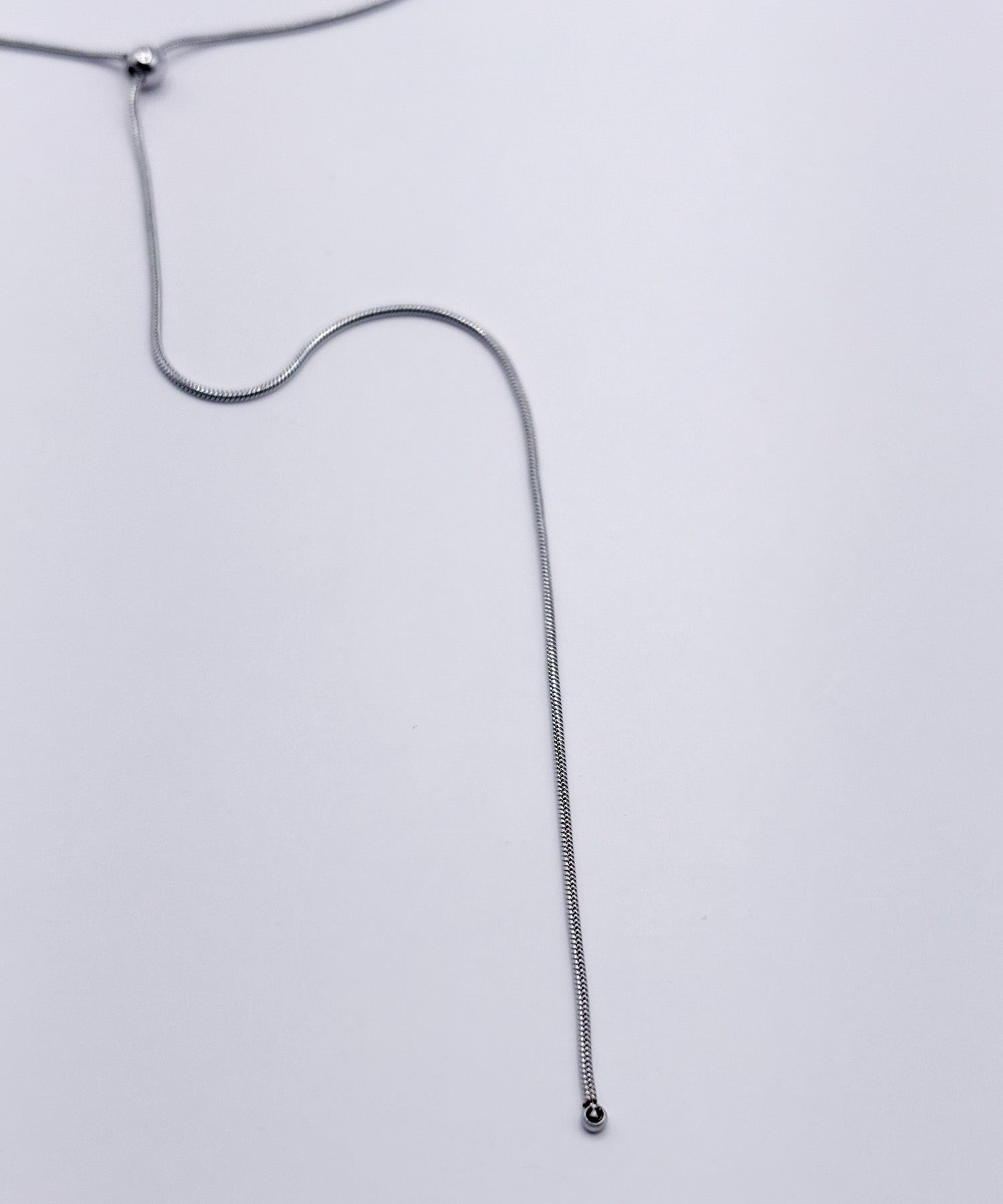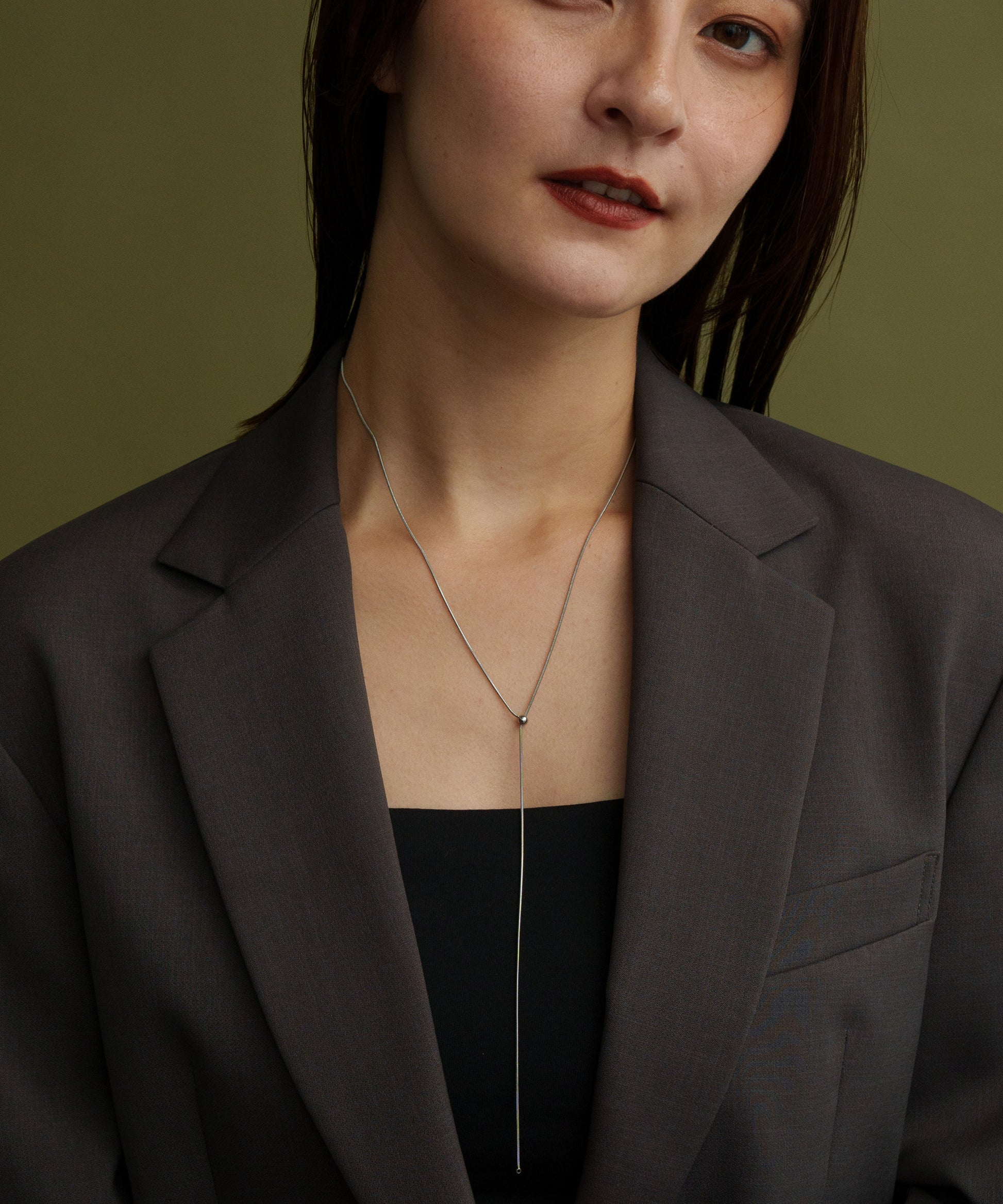 シンプルなスネークチェーンのY字ネックレス。中央のボールでスライドし洋服に合わせた長さ調節が可能。縦のラインを強調しシャープにみせてくれます。。