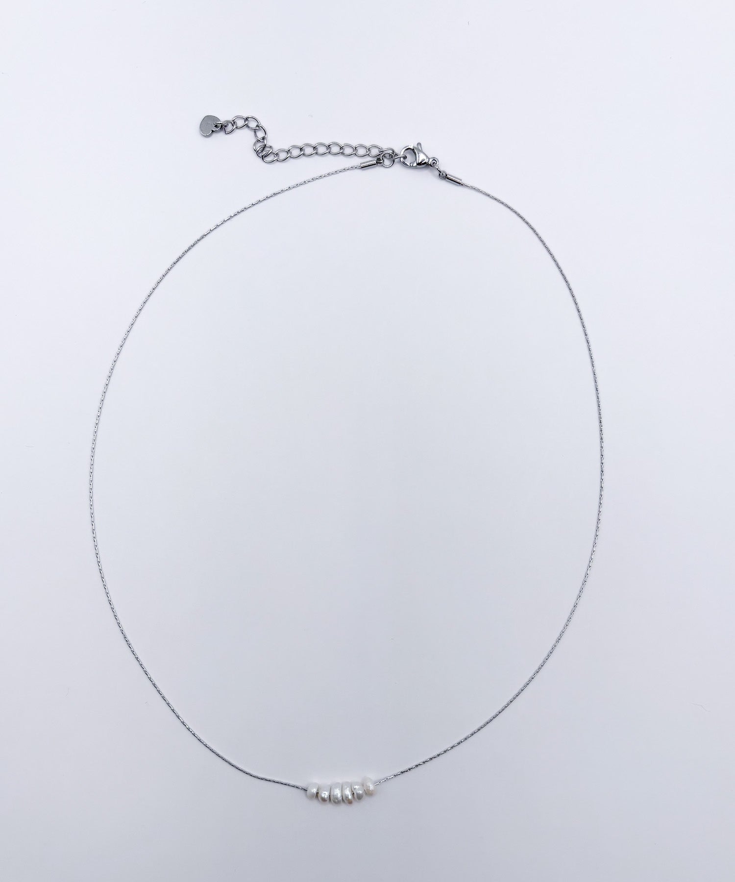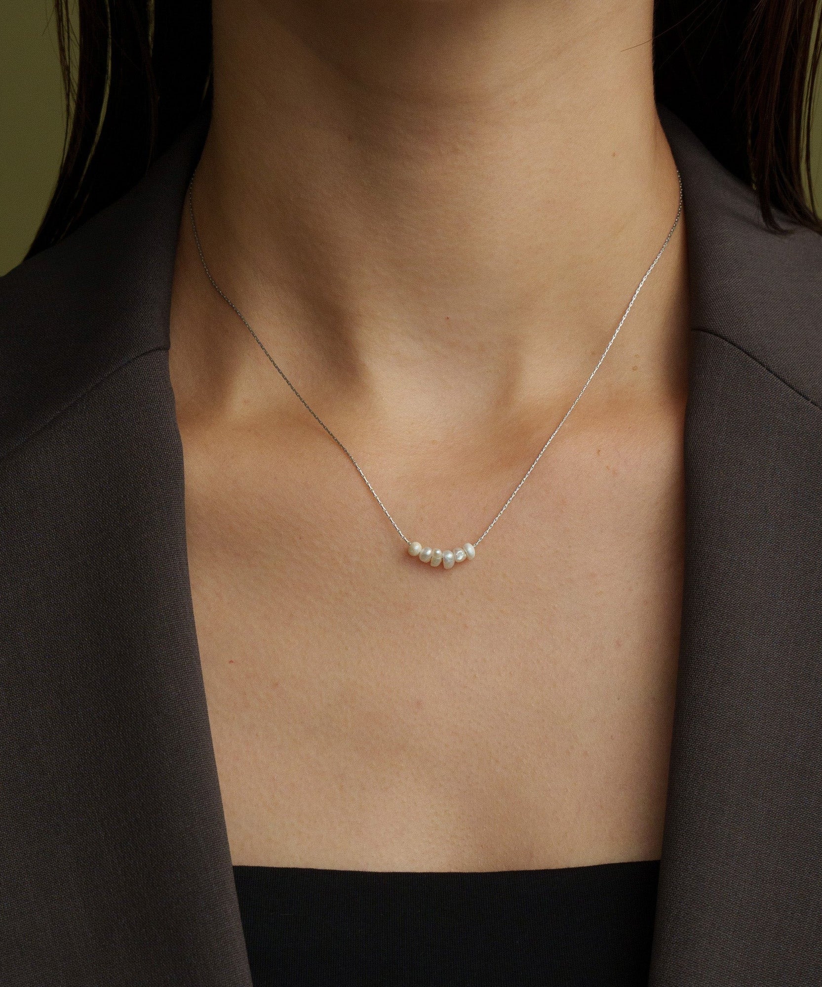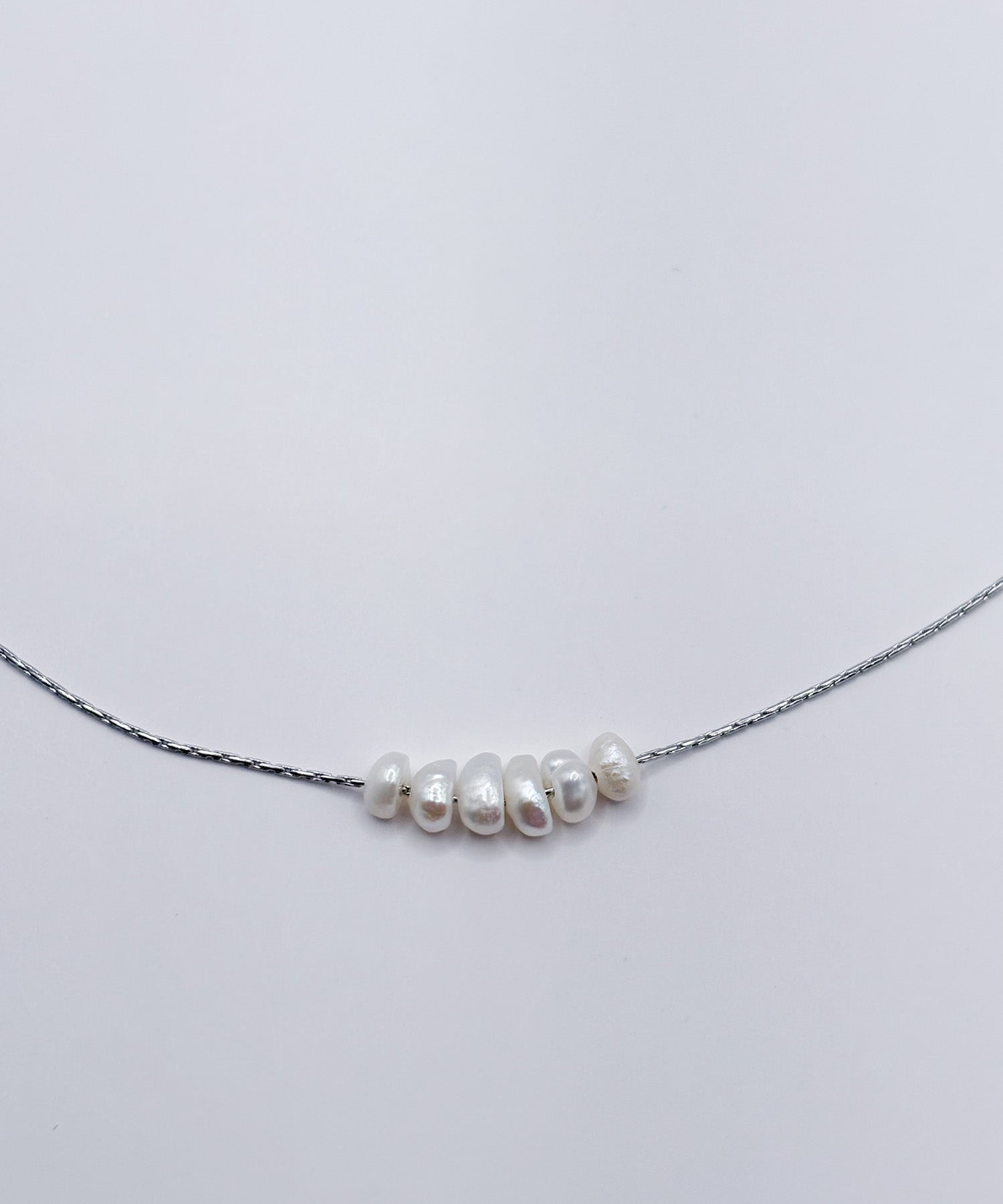 カジュアルな抜け感が出せる歪なパールパーツを6つ配列し、ポイントにしたネックレス。