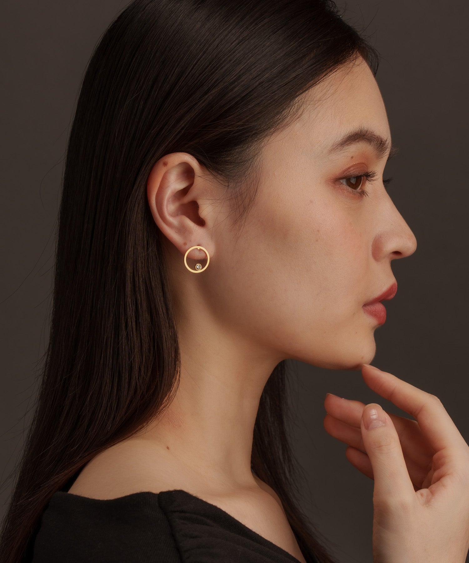 サークルの中に一粒ストーンがポイント。軽い付け心地のピアスです。