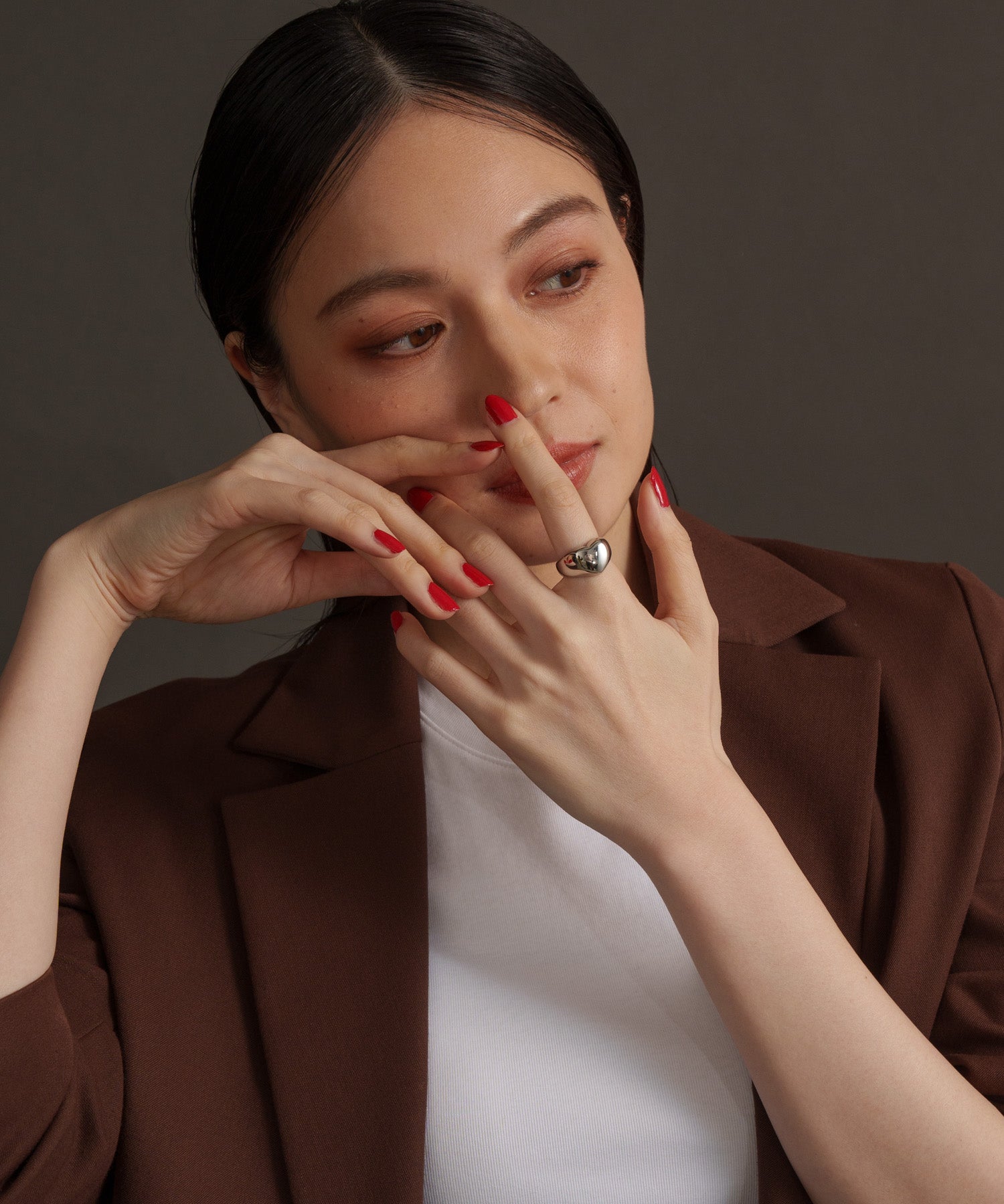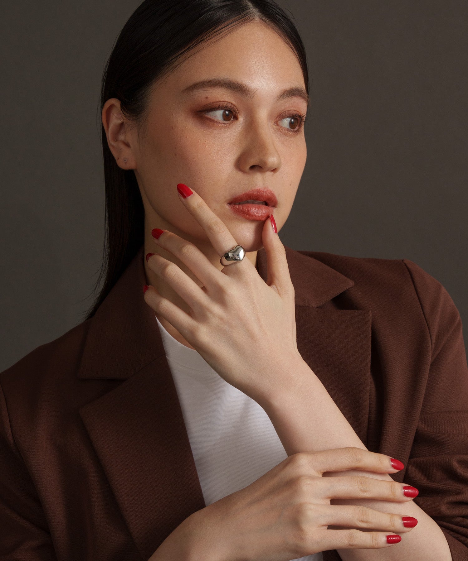 ハートが独立しないよう、サイドのリングに繋がるように馴染ませることで、フェミニンさを抑えています。