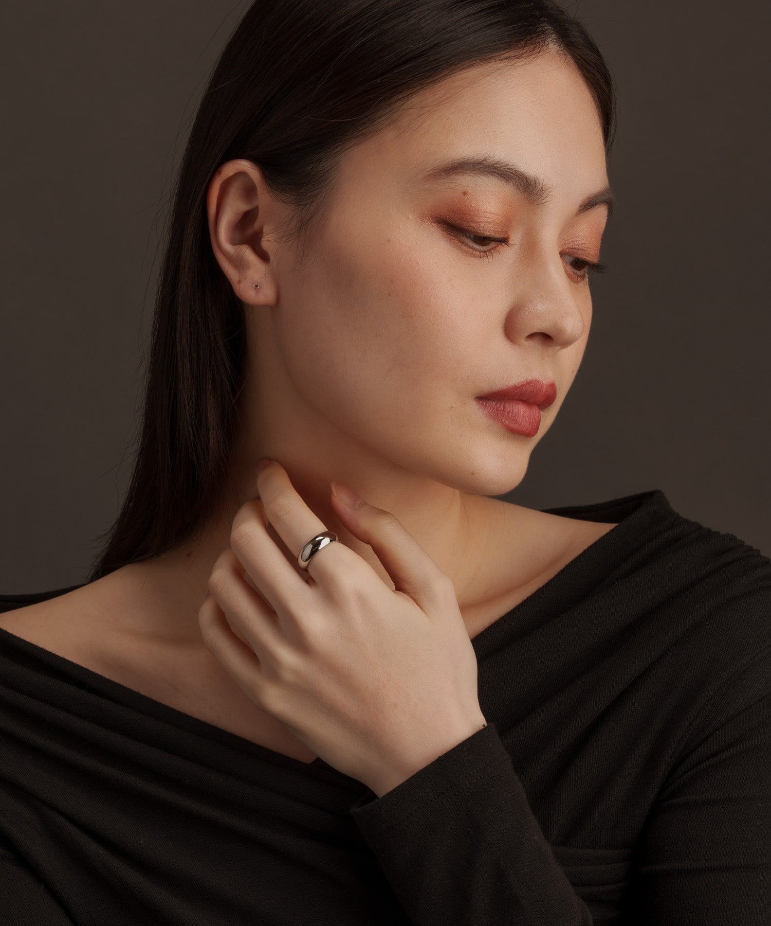 ベーシックなリングは太さ違いで何本でも。6mmの幅があり、一本でも主役級のリングです。