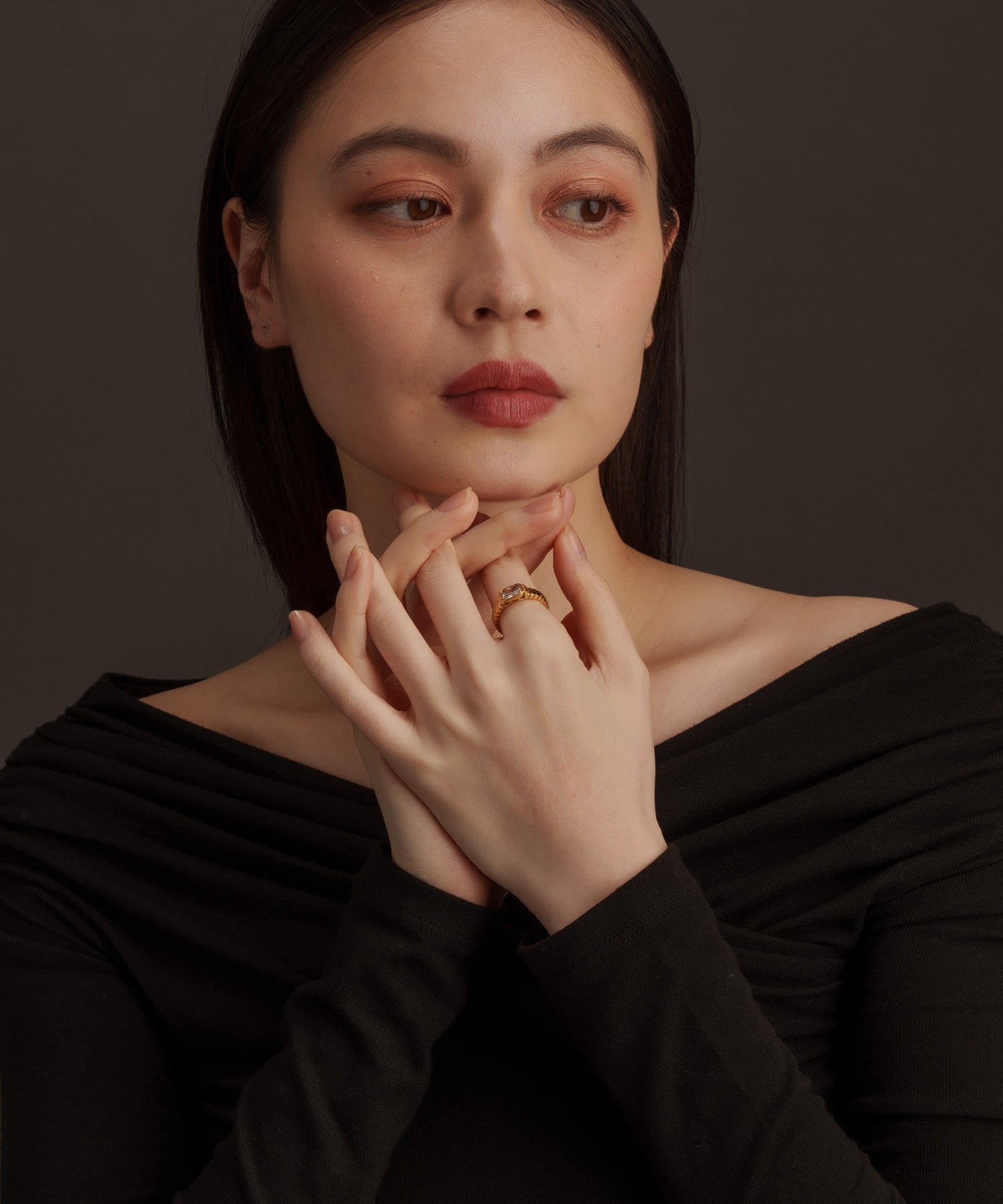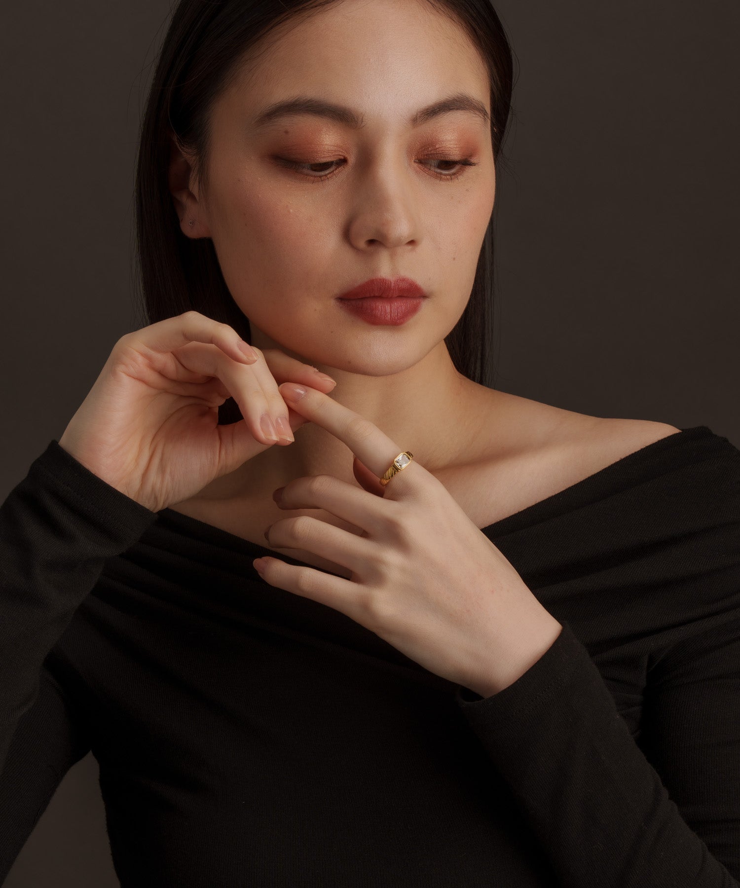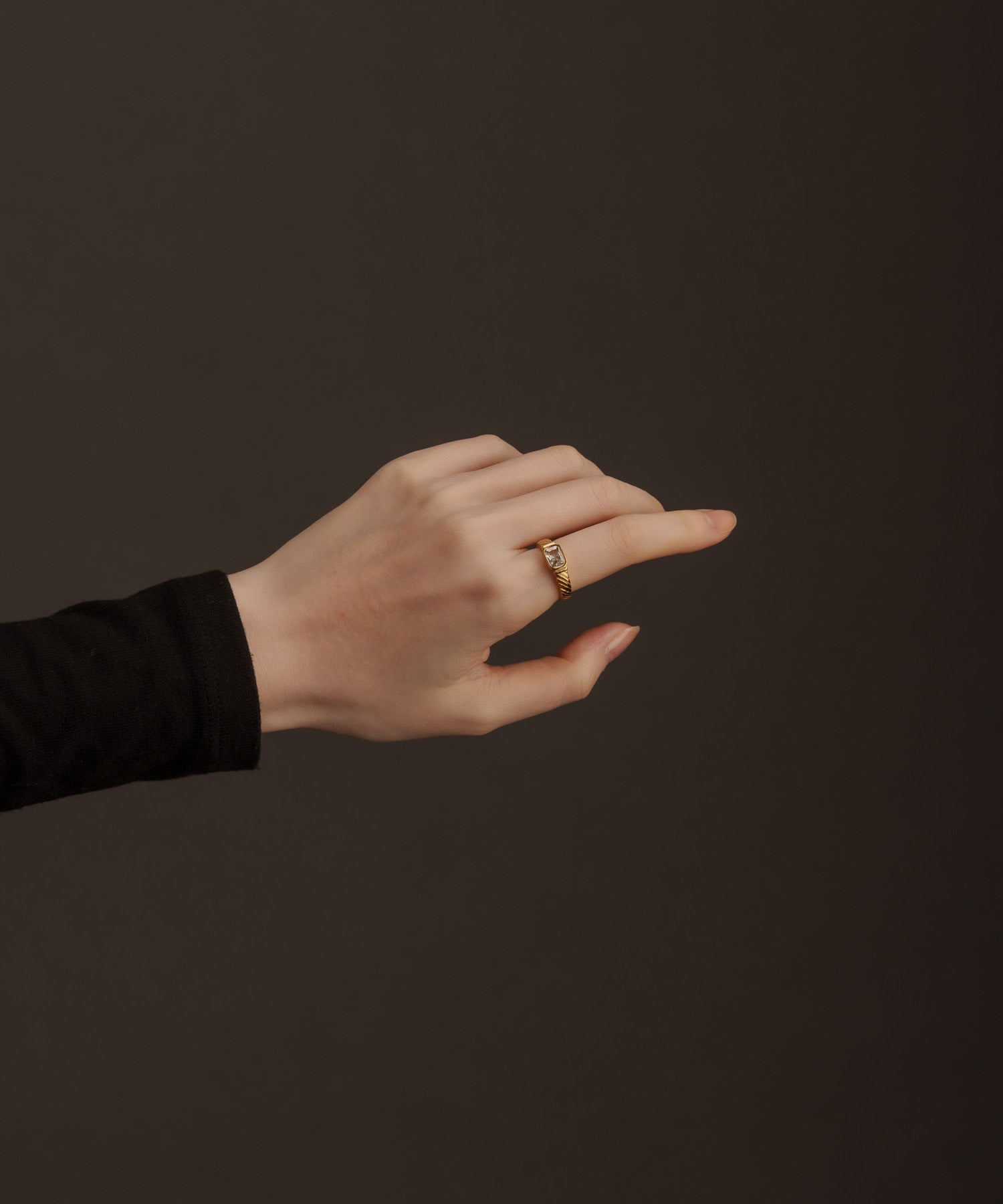 ゴールドのくすんだ色味とストーンがヴィンテージを醸し出すリング。