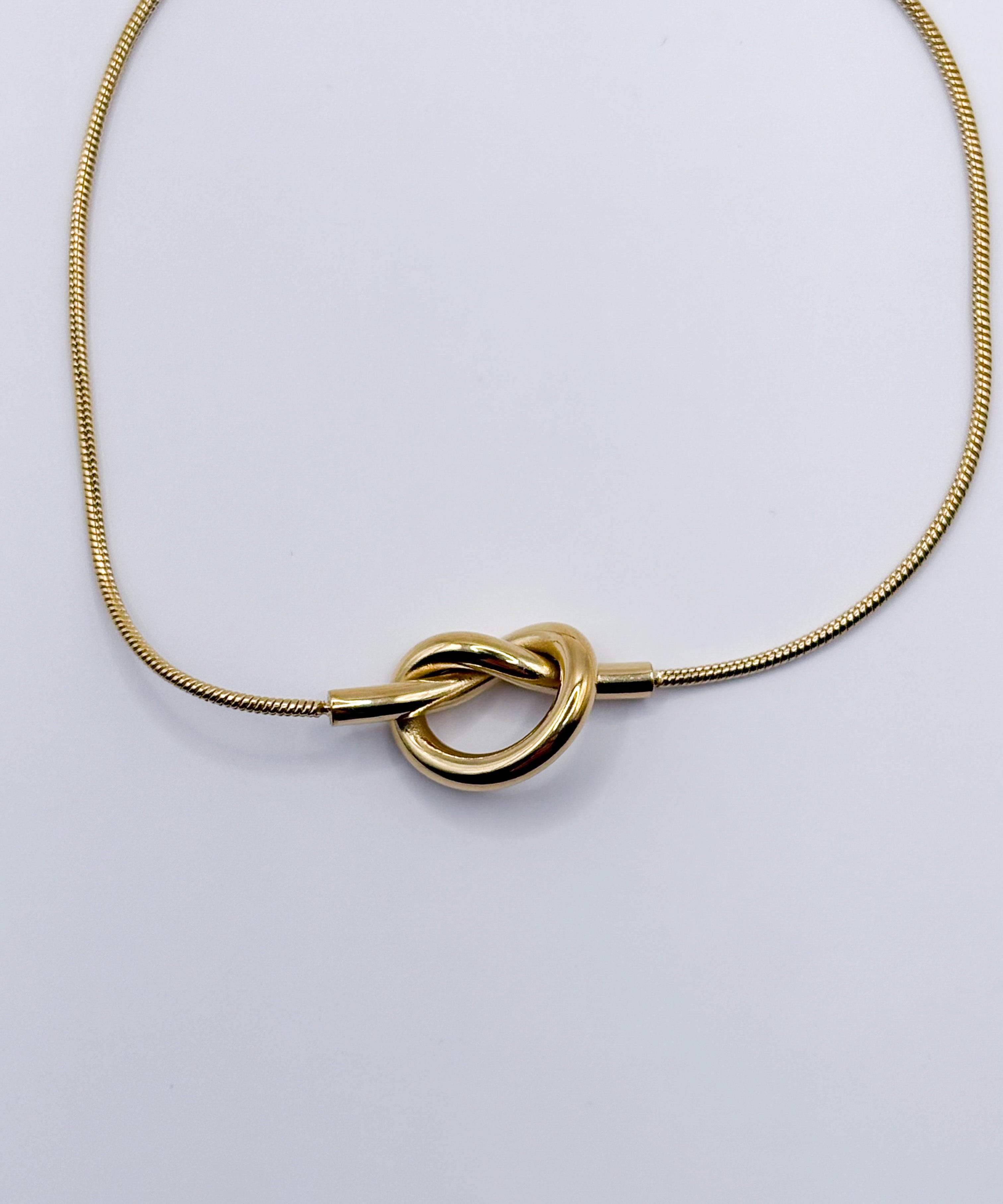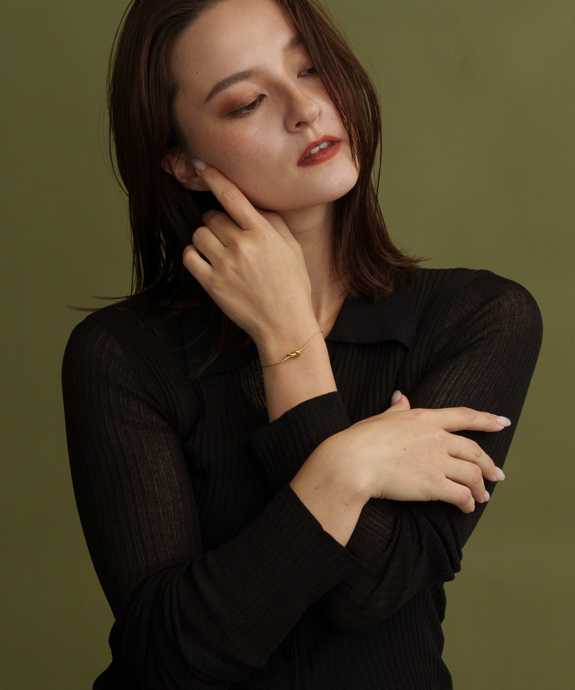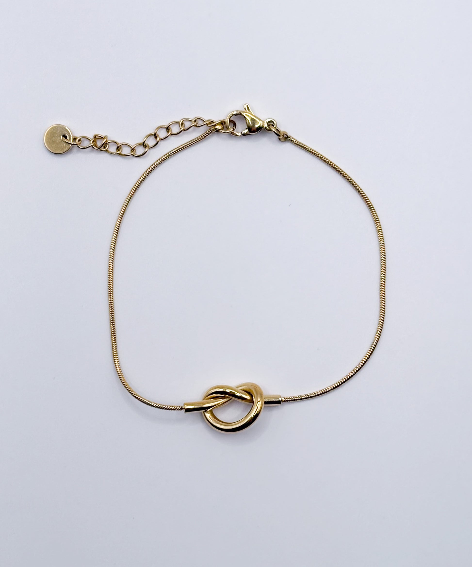 シンプルなチェーンの中央を結びアクセントにしたブレスレット。飾りすぎないデザインでどんなコーデにも。