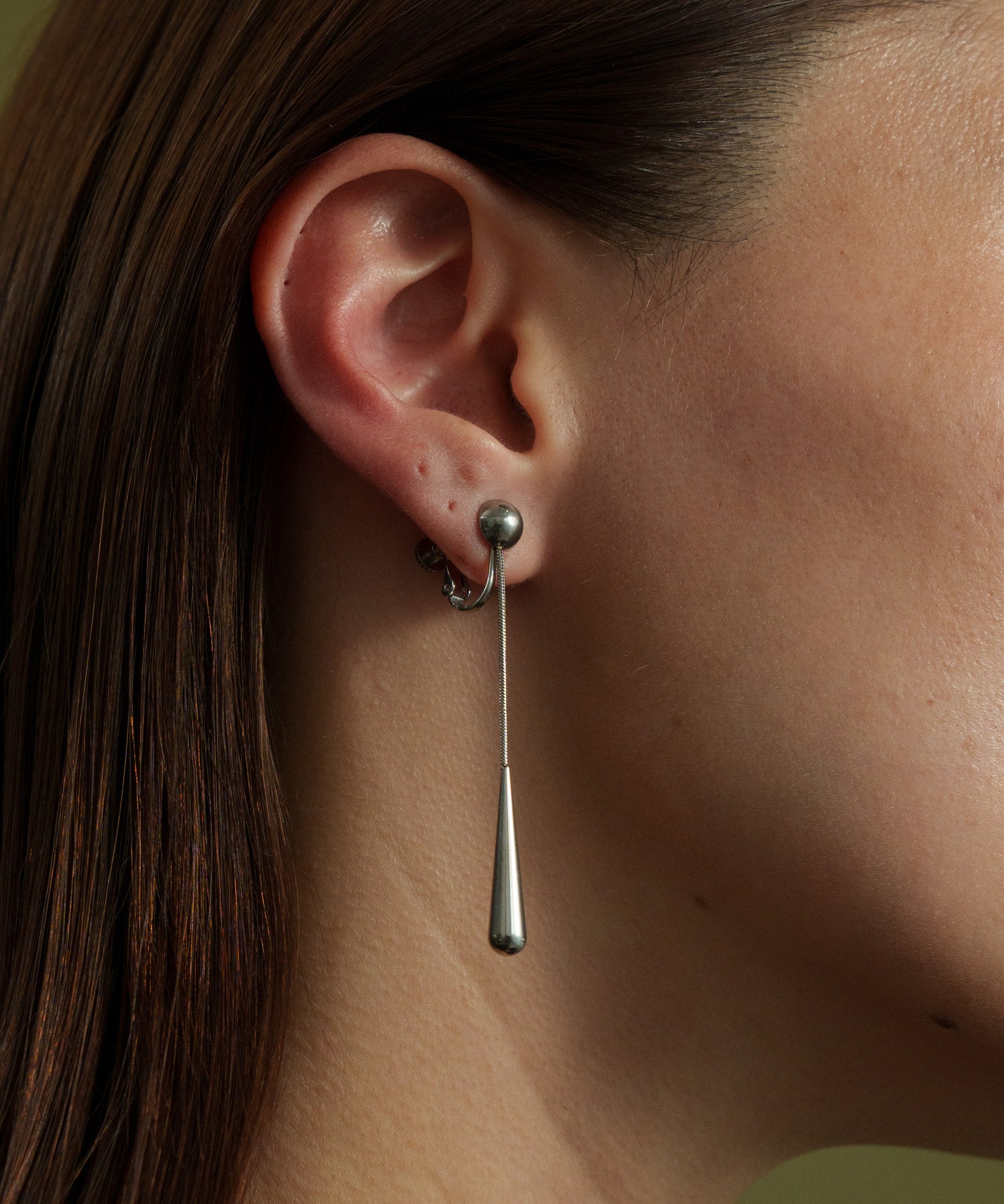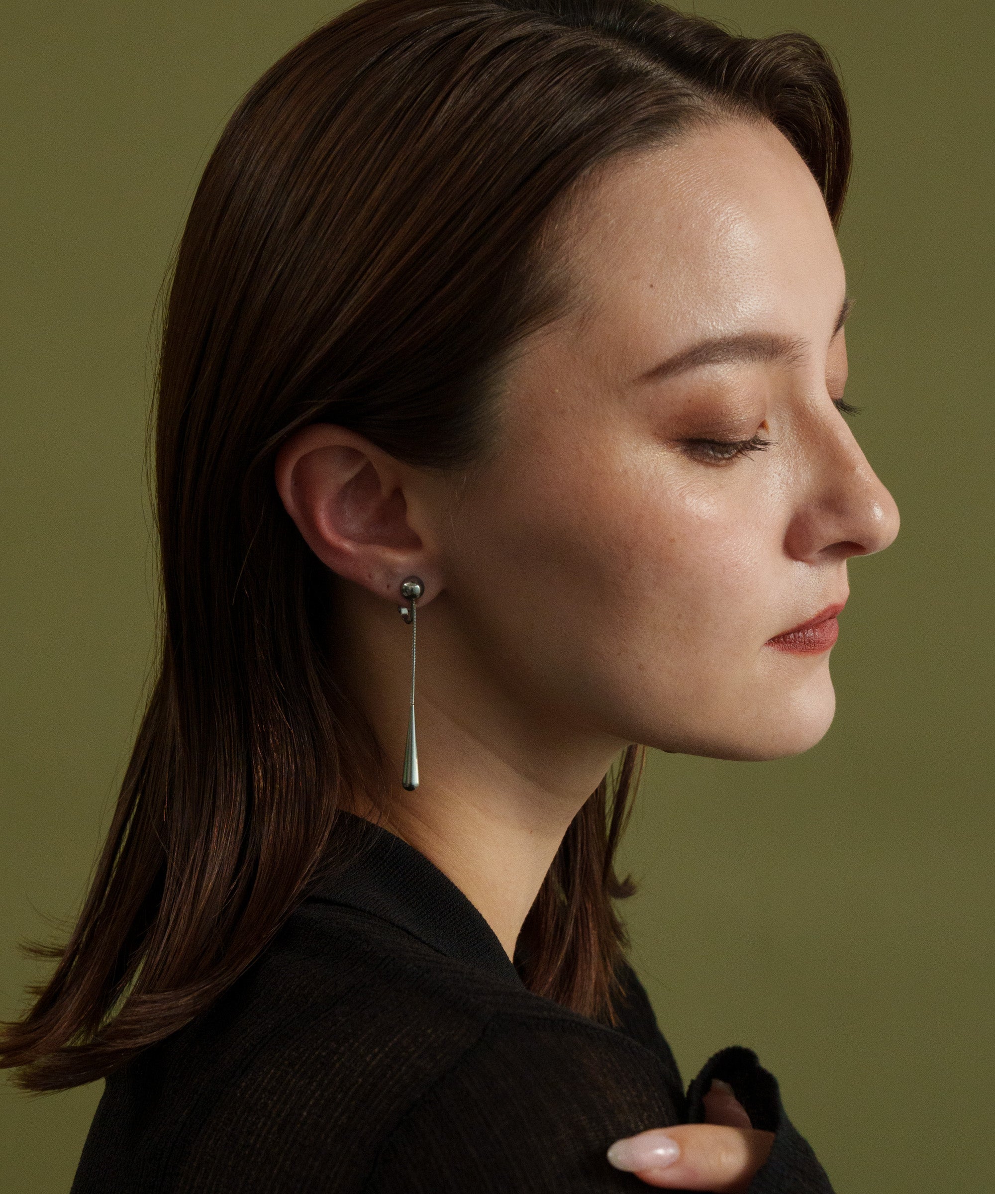 滑らかなスネークチェーンにしずく型チャームが揺れるデザイン。動くたび光りを反射しエレガントな印象に。