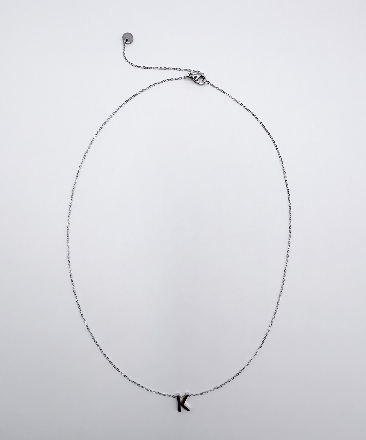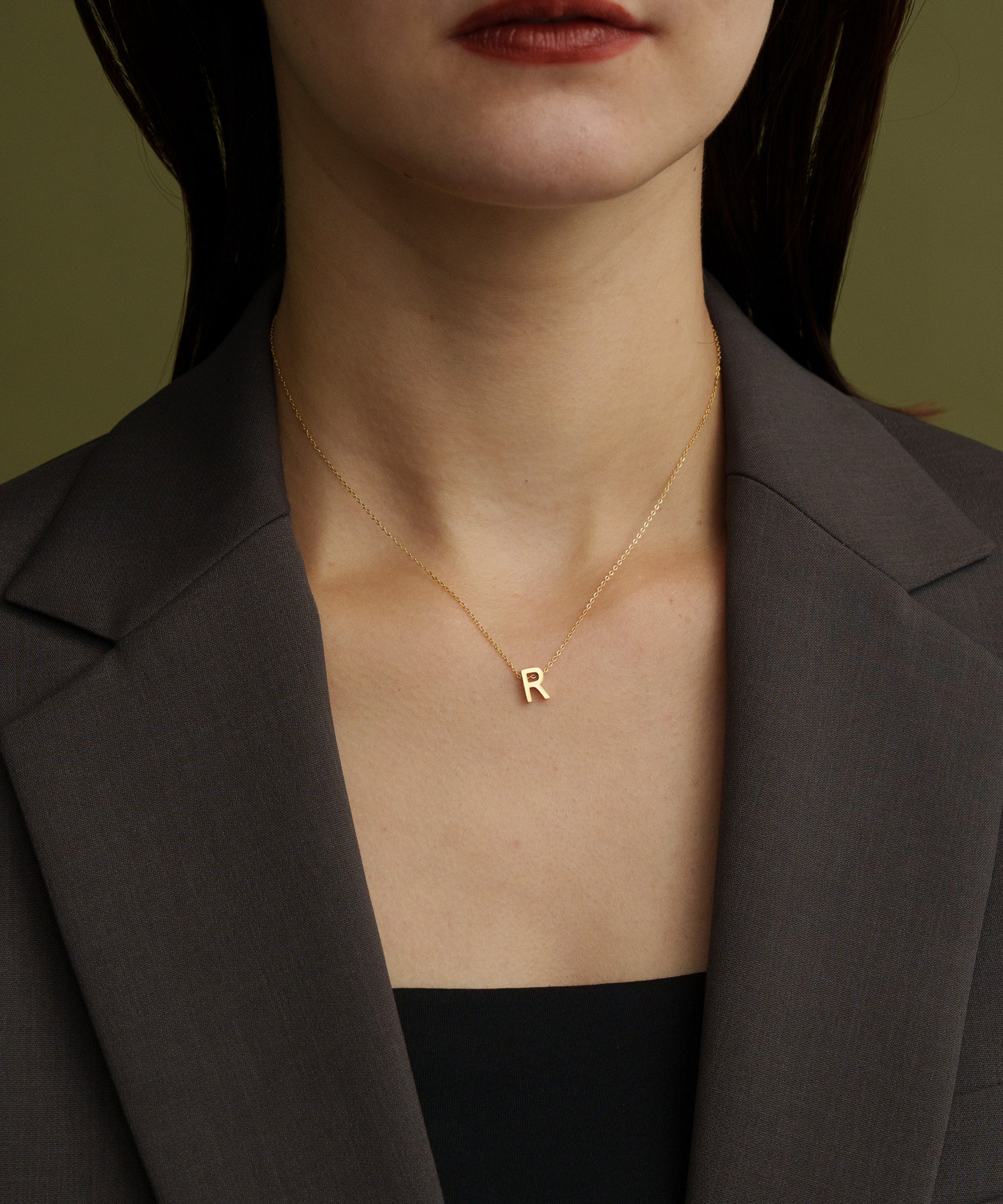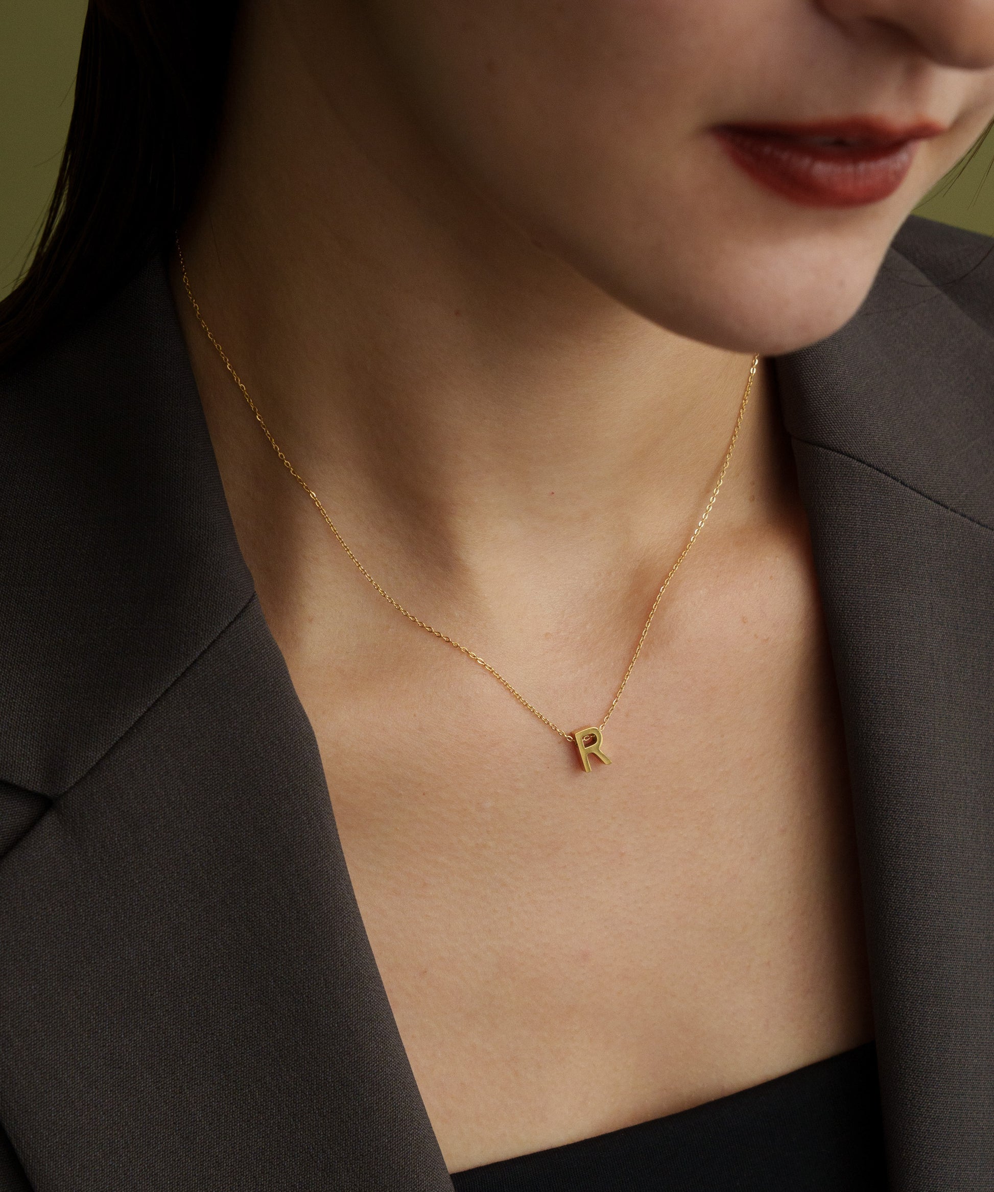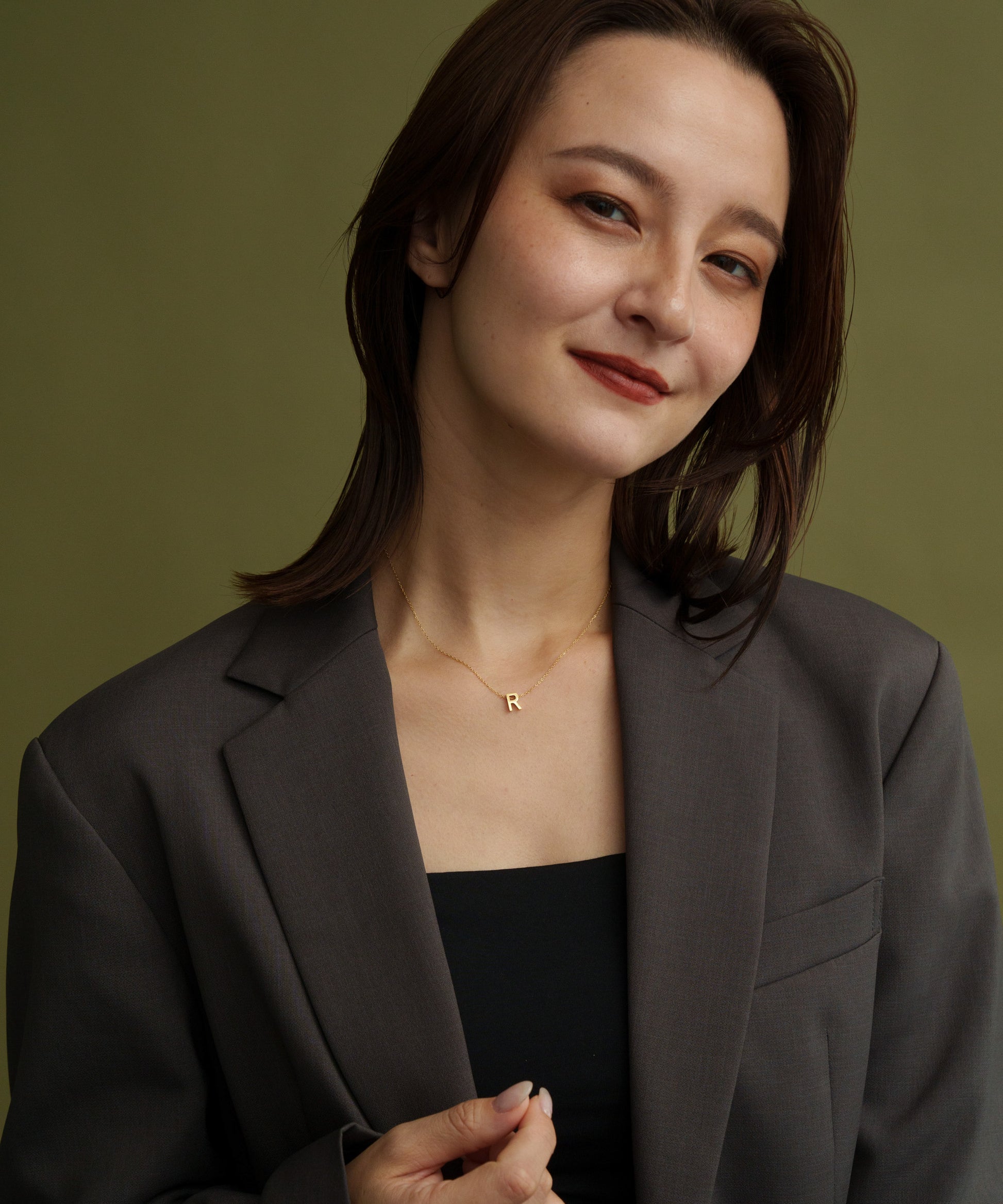 チェーンも細くイニシャルも小ぶりで控えめデザインは、気張らず着用できるネックレス。プレゼントにもおススメ。