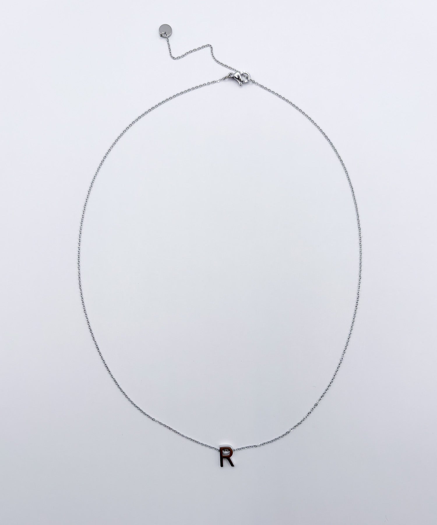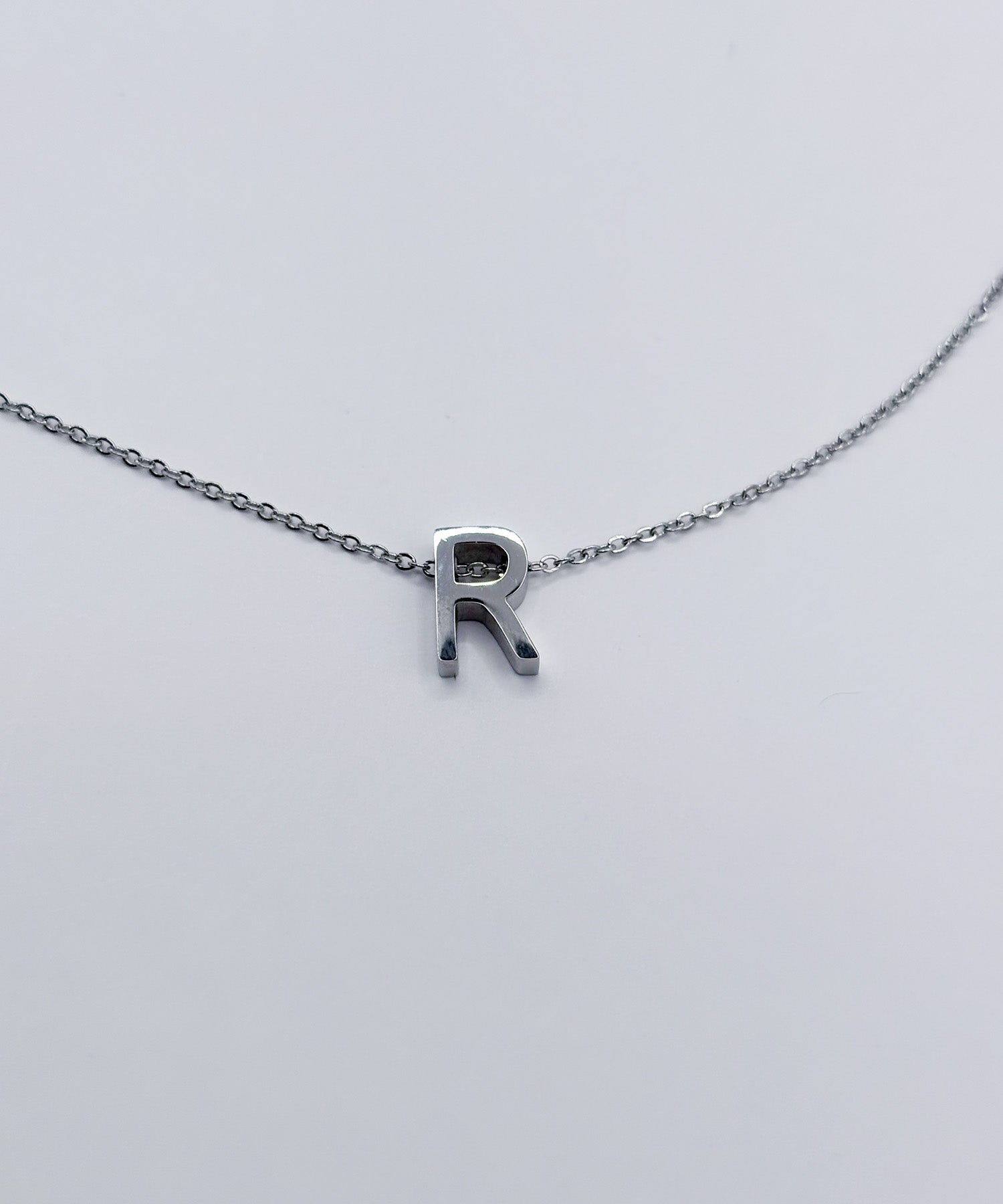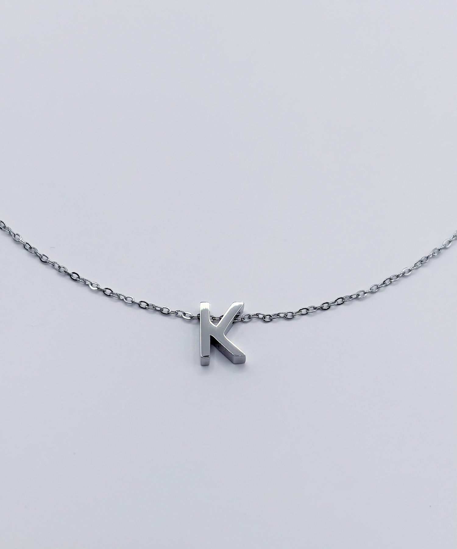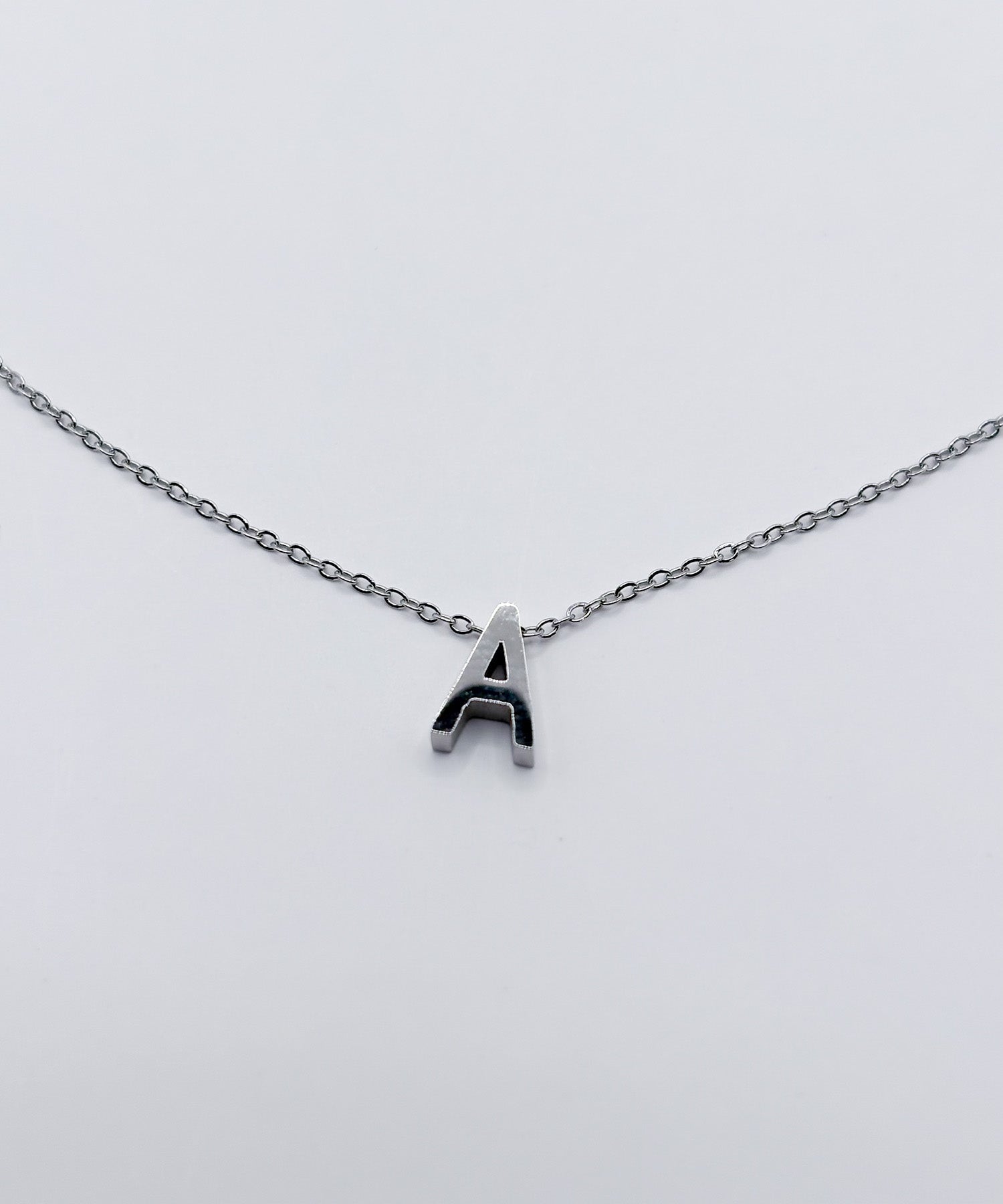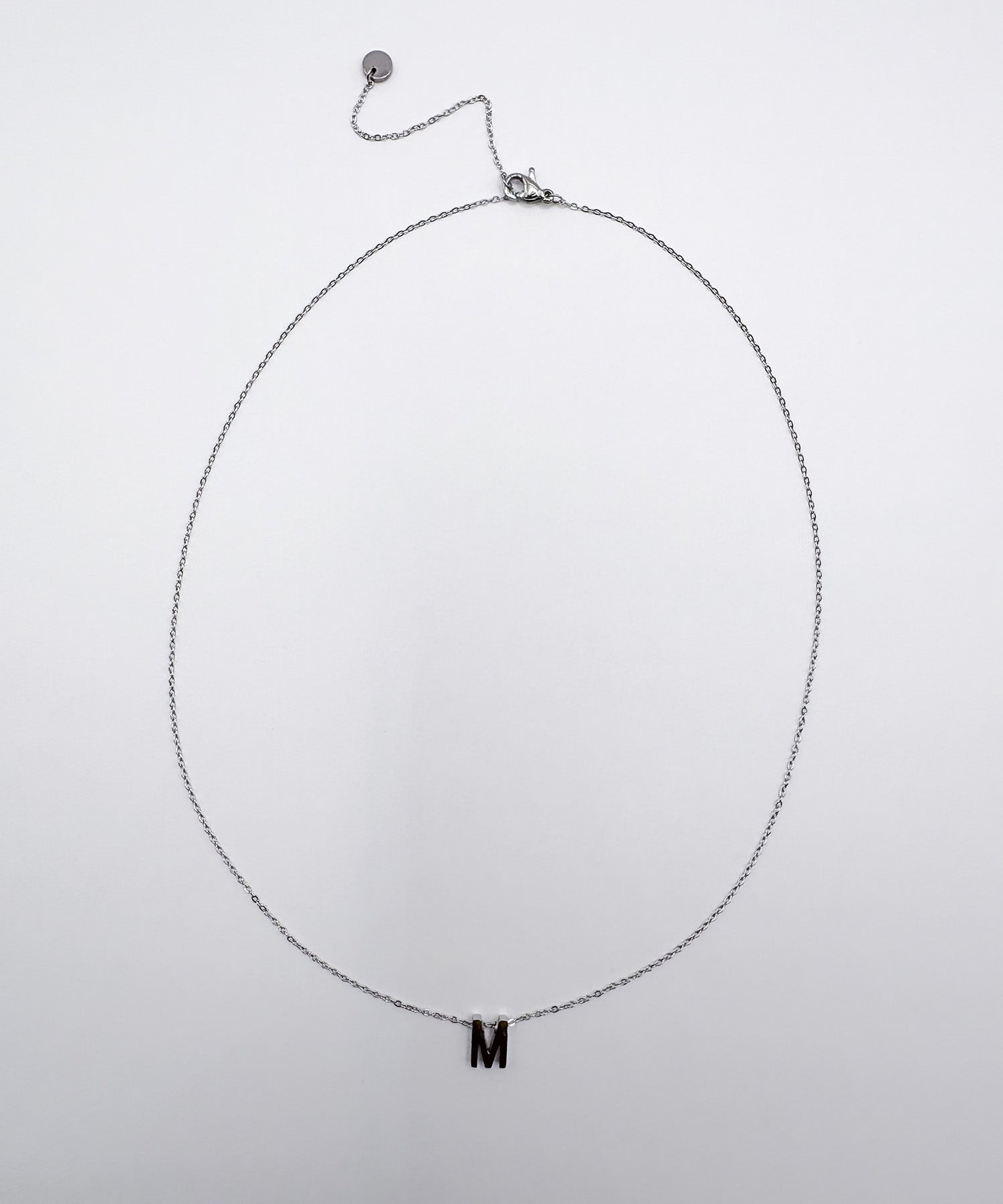 チェーンも細くイニシャルも小ぶりで控えめデザインは、気張らず着用できるネックレス。プレゼントにもおススメ。