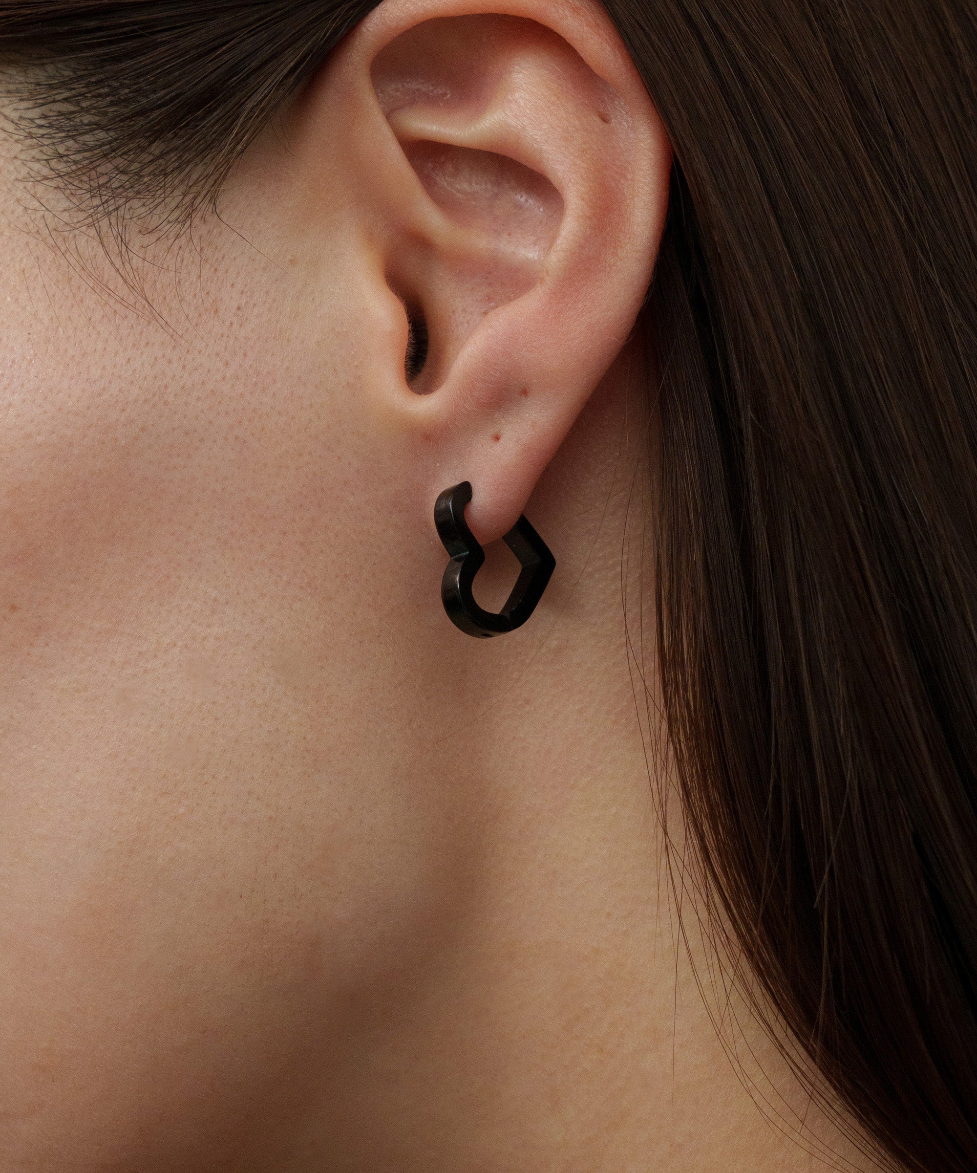 一見シンプルなプレートのように見えますが、横から見ると可愛らしいハートの形に。キャッチレスで軽量なので、付けていても負担にならないピアスです。